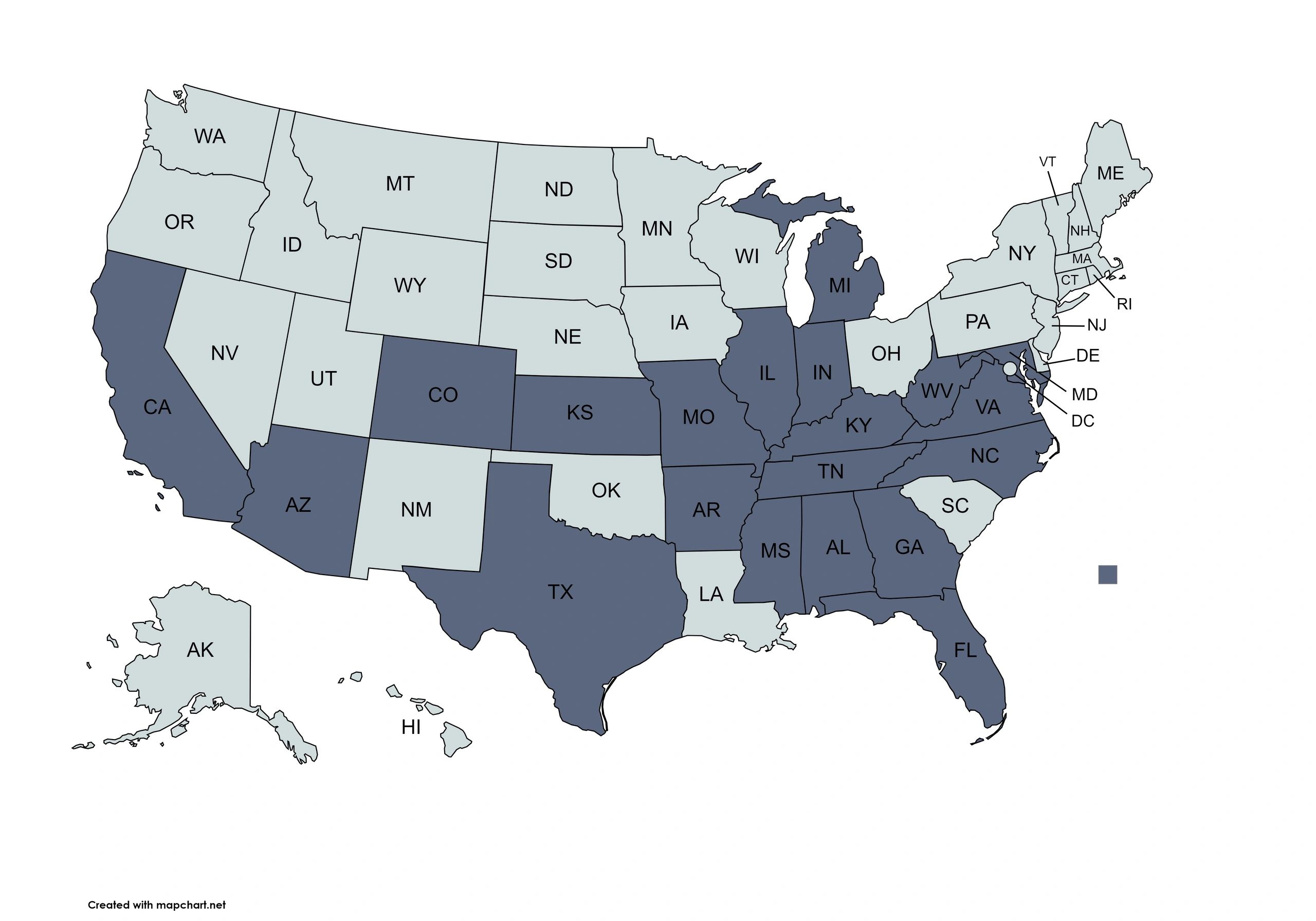 1480 Woodstone Drive Suite 221 St Charles, MO 63304 Virtual appointments are available in all the dark blue states. Hello@Alo-Nutrition.com Phone: 314-275-0658 Fax: 833-860-7211 *Map Key We can work with people who live in dark blue states.